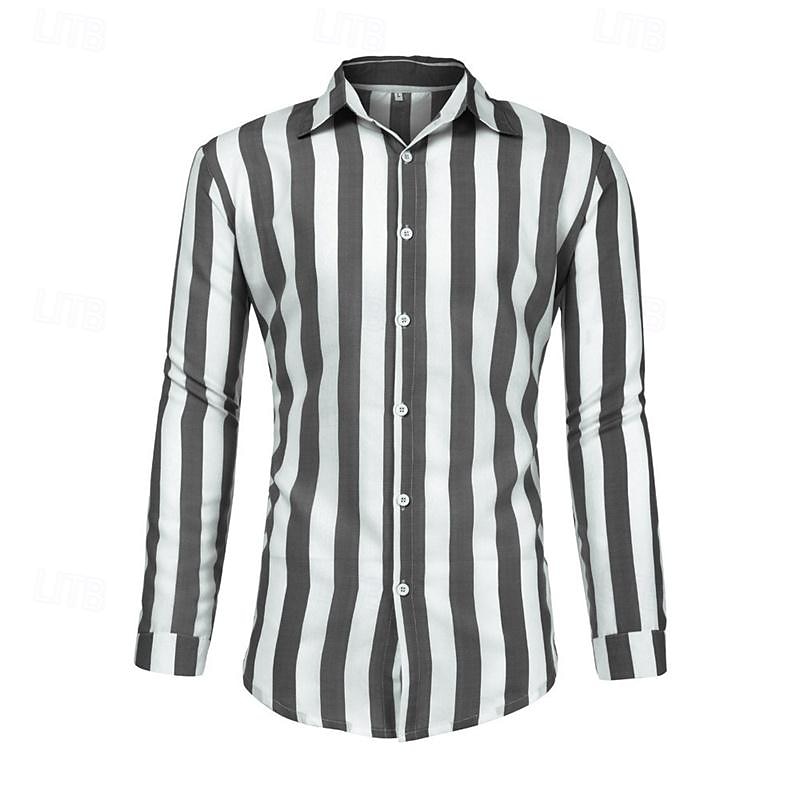 More information about Men's Shirt Summer Shirt Casual Shirt Beach Shirt Button Up Shirt Striped Shirts Black Blue Gray Long Sleeve Stripes Turndown Vacation Hawaiian Button-Down Clothing Apparel Polyester Fashion Casual