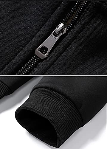 chouyatou Men's Fall Winter Stand Collar Zip Up Sherpa Lined Jersey Knit Sweatshirt Jacket 5