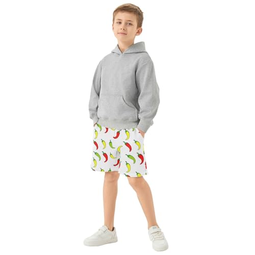 J JOYSAY Chili Pepper Scatter White Boys Athletic Shorts Kids Youth Casual Shotrs with Pockets Elastic Waistband 7
