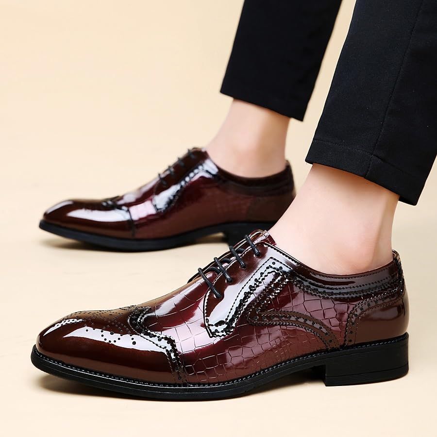 More information about Formal Shoes Dress Oxford for Men Lace Up Square Toe PU Leather Brogue Embossed Wingtips Derby Shoes Non Slip Rubber Sole Slip Resistant Block Heel(Red,9)