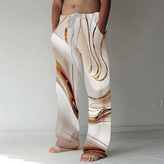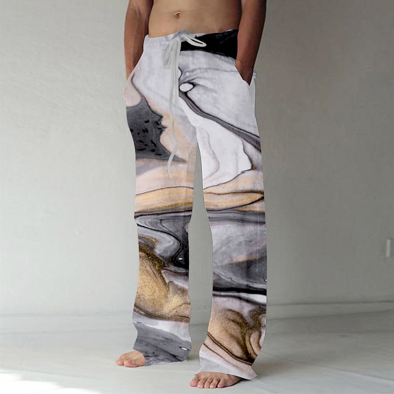 More information about Men's Marble Abstract Liquid Art Trousers Baggy Pants Casual Pants Mid Waist Casual Outdoor Vacation Daily Drawstring Elastic Waist Wide Leg Summer Spring 3D Print Black Yellow Green