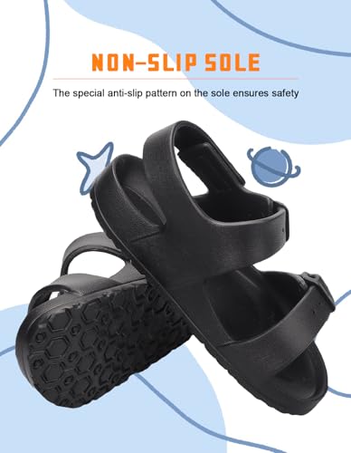 Kids Toddler Sandals Boys Girls Double Buckle Slides Summer Shower Beach Pool Water Shoes Slip on Clouds Slippers,Black 8 Toddler 2
