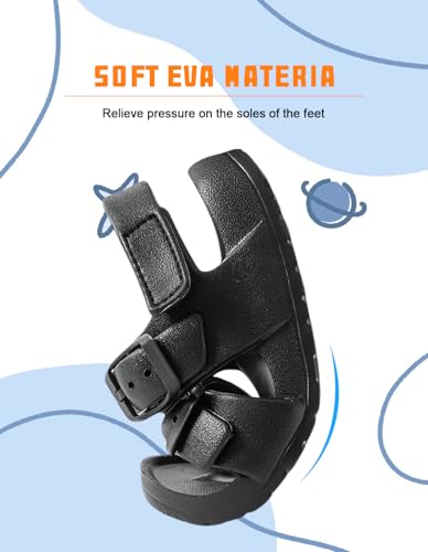 Kids Toddler Sandals Boys Girls Double Buckle Slides Summer Shower Beach Pool Water Shoes Slip on Clouds Slippers,Black 8 Toddler 6