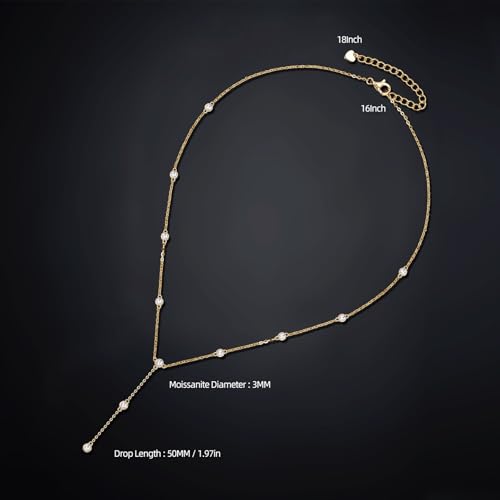 Moissanite Necklace for Women Sterling Silver, Lab Imitation Diamond Lariat Drop Y necklace, Dainty elementary Long Prom Bridal Wedding Hypoallergenic Neckalces, 16 to 20 Inch