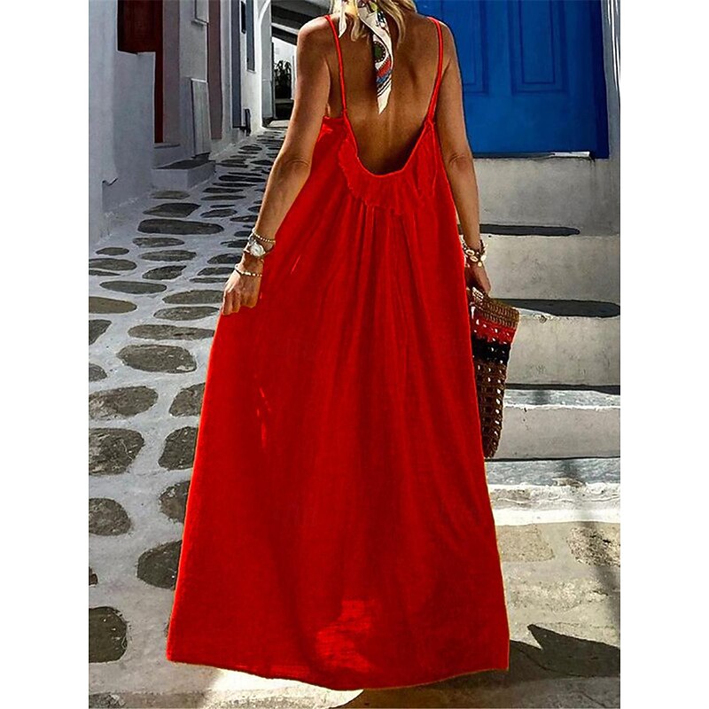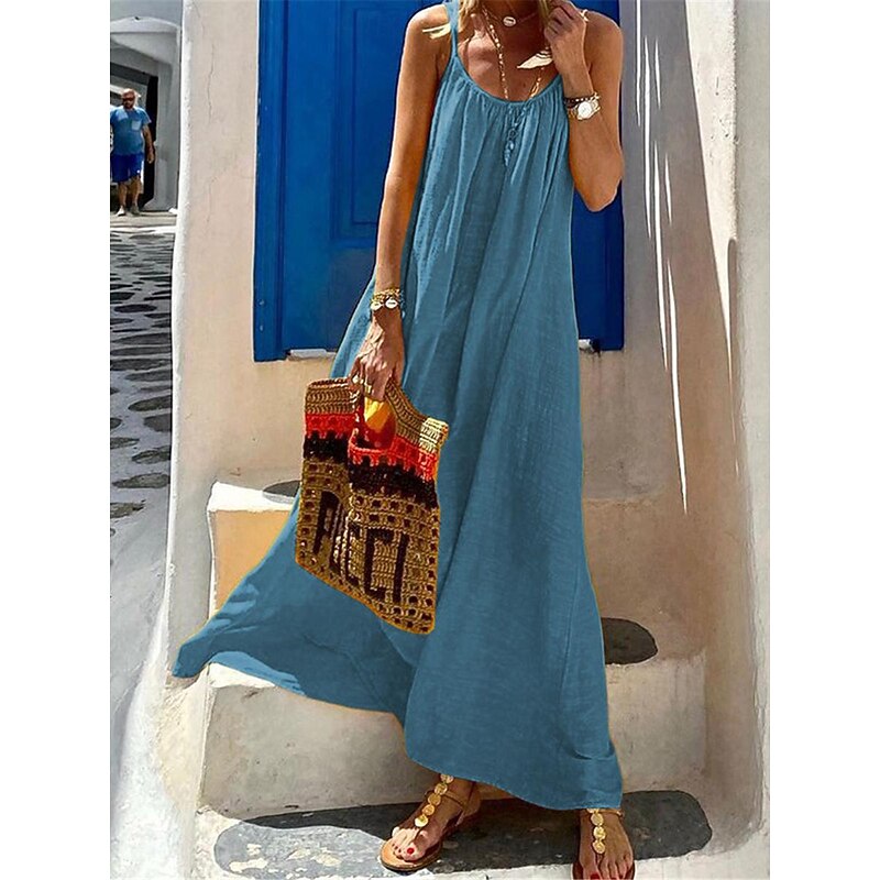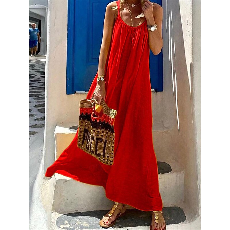 More information about Women's Yellow Red Blue Summer Spring Maxi long Dress Cotton Linen Dresses Casual Dress Strap Dress Basic Modern Vacation Daily Weekend Loose Fit Plain U Neck