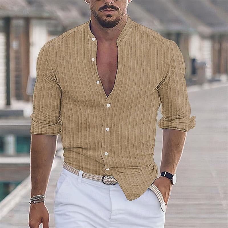 Crafted from a premium linen-cotton blend, this men's shirt offers a breathable and lightweight feel, perfect for keeping you comfortable during the warm spring and fall seasons. The material is designed with subtle vertical stripes for added sophistication and style.