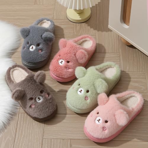 • Material: Winter Cartoon Bear Slippers for Women with Fluffy Plush fabric, Lightweight, breathable, the soft fleece padded lining provide great warmth and comfort during cold winter months