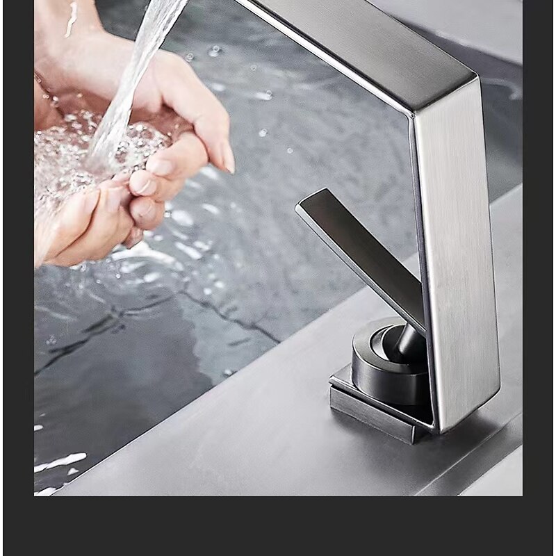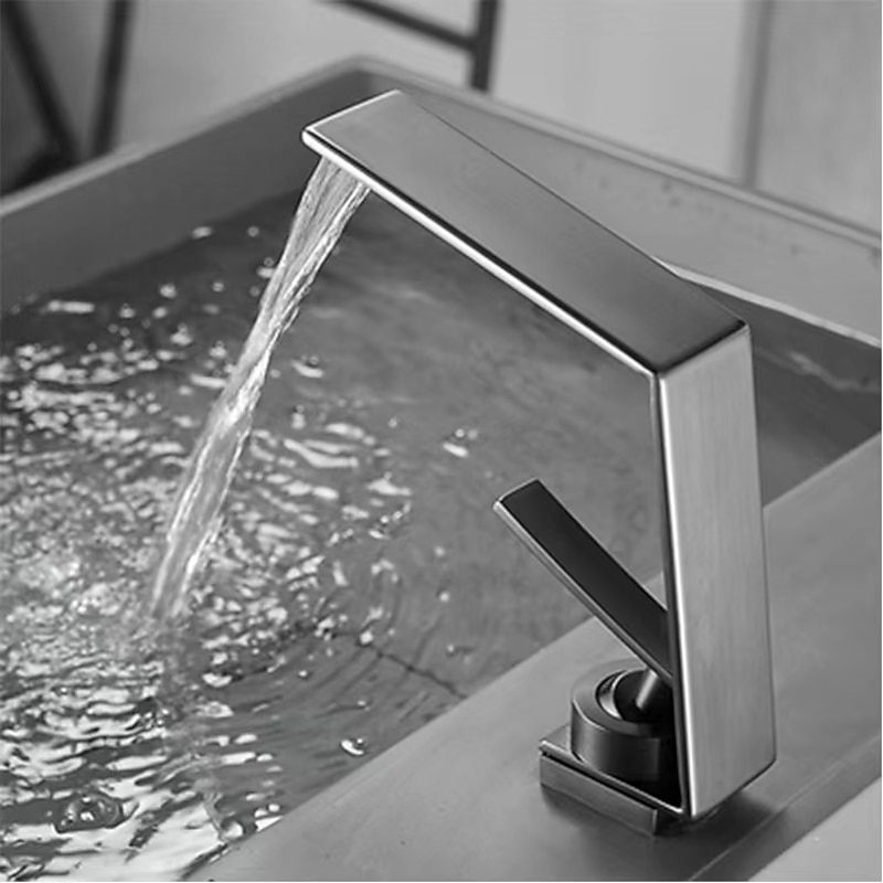 Waterfall Spout: Designed with a waterfall spout, this bathroom sink faucet delivers visual-pleasing and gentle waterfall water flow, helping create a serene and stylish bathroom environment.