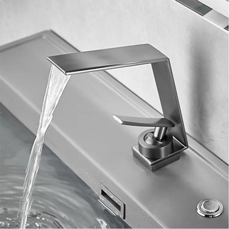 Multilayer Electroplating Process: Adopting an advanced electroplating process, this waterfall bathroom brass faucet passed the 10-grade salt spray test and guaranteed super corrosion resistance, anti-rust, and anti-scratch.