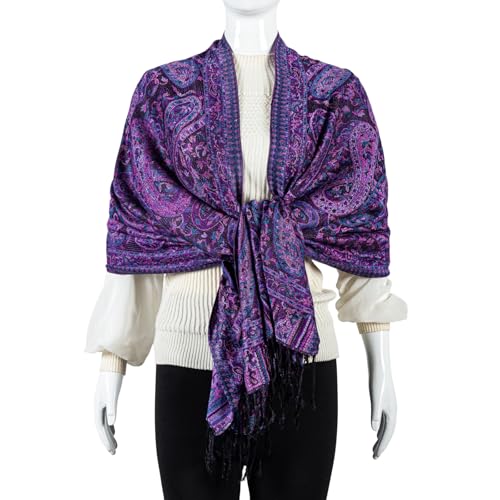 • SUPER SOFT MATERIAL WITH SILKY SHEEN: AUSEKALY pashmina feel wraps for women are made of high-quality material, lluxurious soft feeling, smooth and skin-friendly, you will love the feel of it around your neck, not scratchy, no fade; Exquisite women shawls are rich in color and sheen, nicely woven pashmina feel design, elegent and stylish; Scarf for women is long and wide ( (length is 72" + 8" fringes and width is 28"), nice and big to wrap around you.