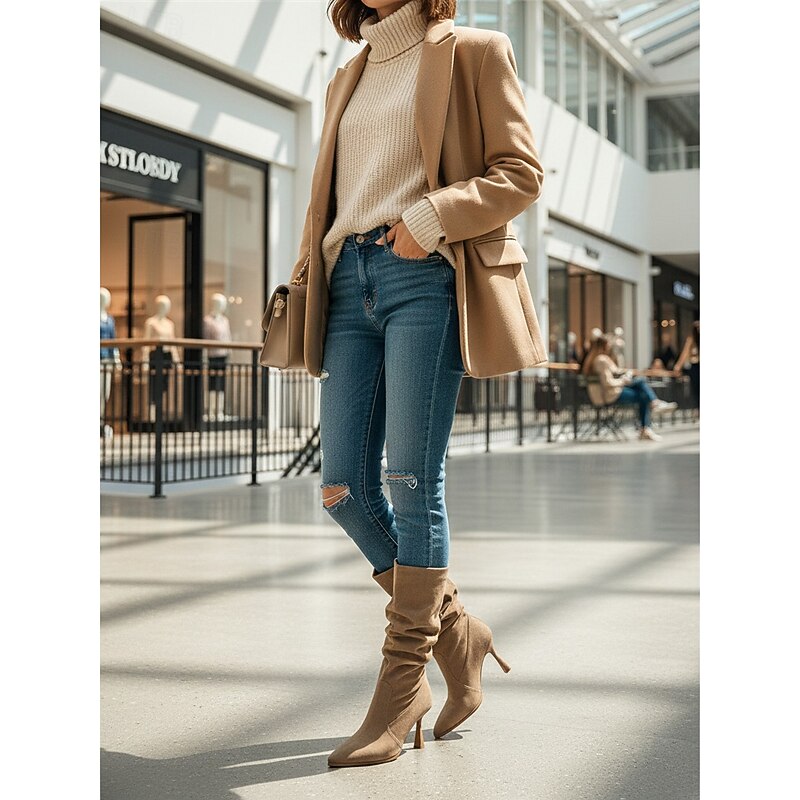 Women's Genuine Suede Slouch Boots with Wide Shaft, Comfortable Everyday Casual Style, Perfect for Urban Relaxed Fashion Outfits 4