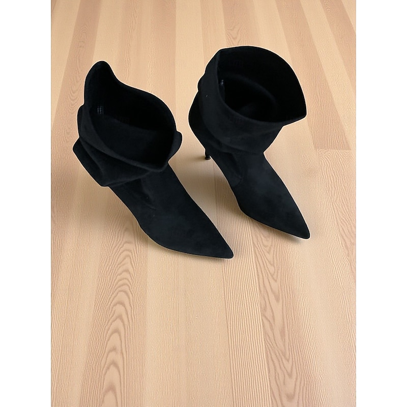 Highlights - Luxurious suede upper - Synthetic leather and textile lining for comfort - Elegant stiletto heel - Stylish pointed toe design - Durable TPR and rubber outsole for traction and stability