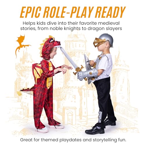 HOT ! Dress Up America - Kids Knight Armor Costume Set – Medieval Role Play with Shield, Helmet, Sword & Accessories – Royal Dress-Up for Boys Ages 3–10