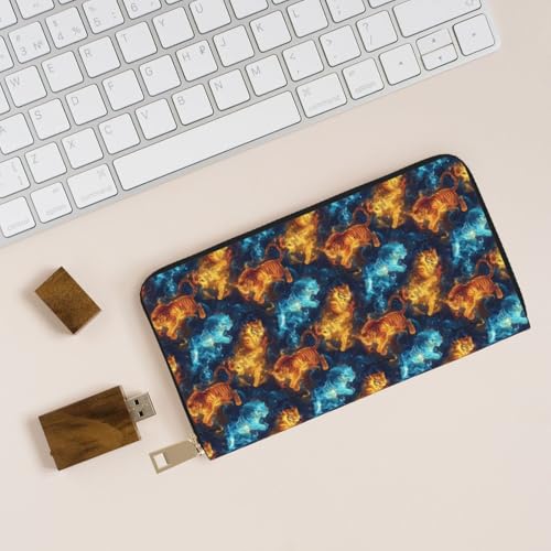 Leather Thin Slim Wallets for Women & Men - Starry Sky Flame Tiger Print Card Wallet Holder with Zipper