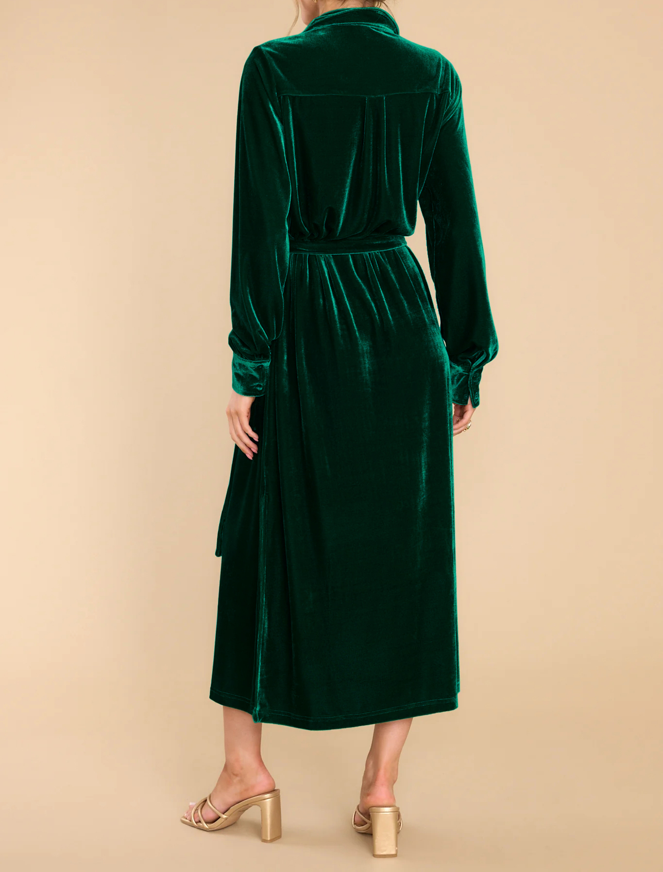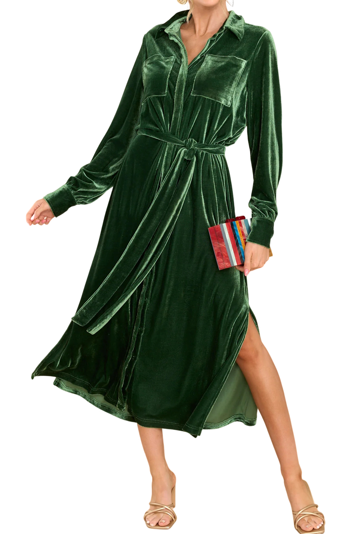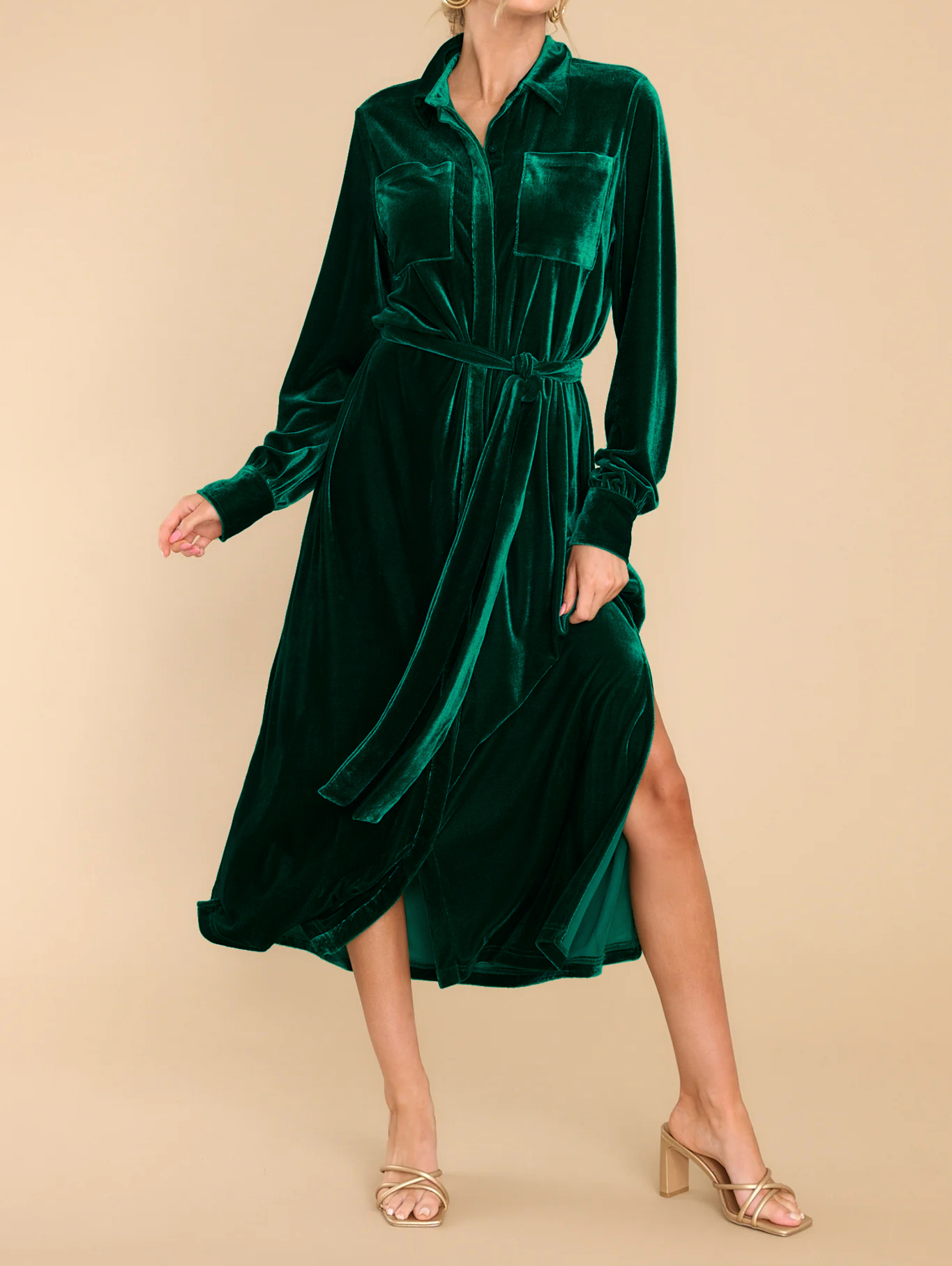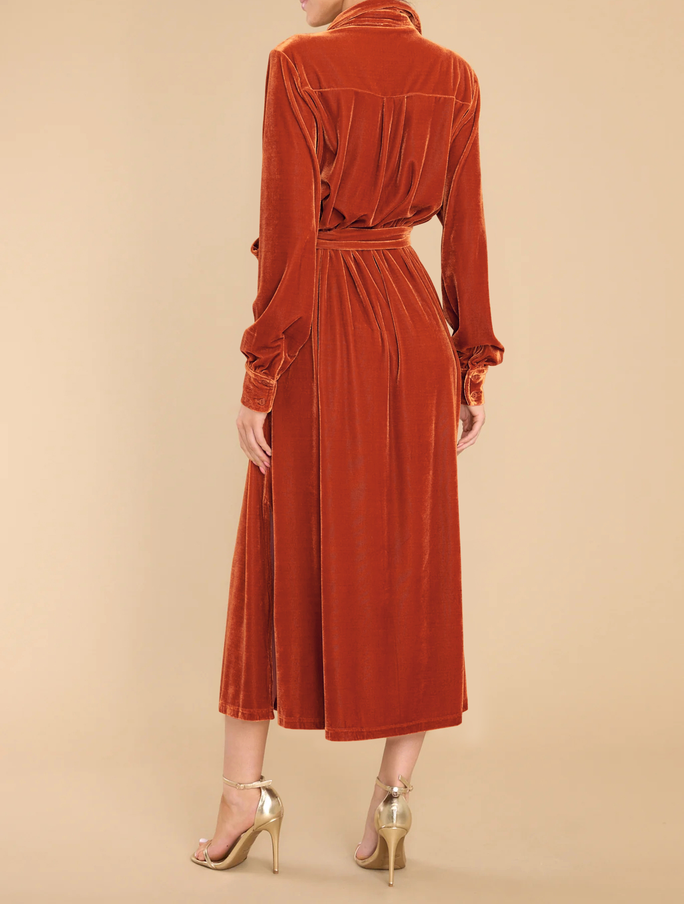 R.Vivimos Women's Fall Long Sleeve Velvet Casual Dresses Button Down Loose Slit Shirt Midi Dress with Belt 4