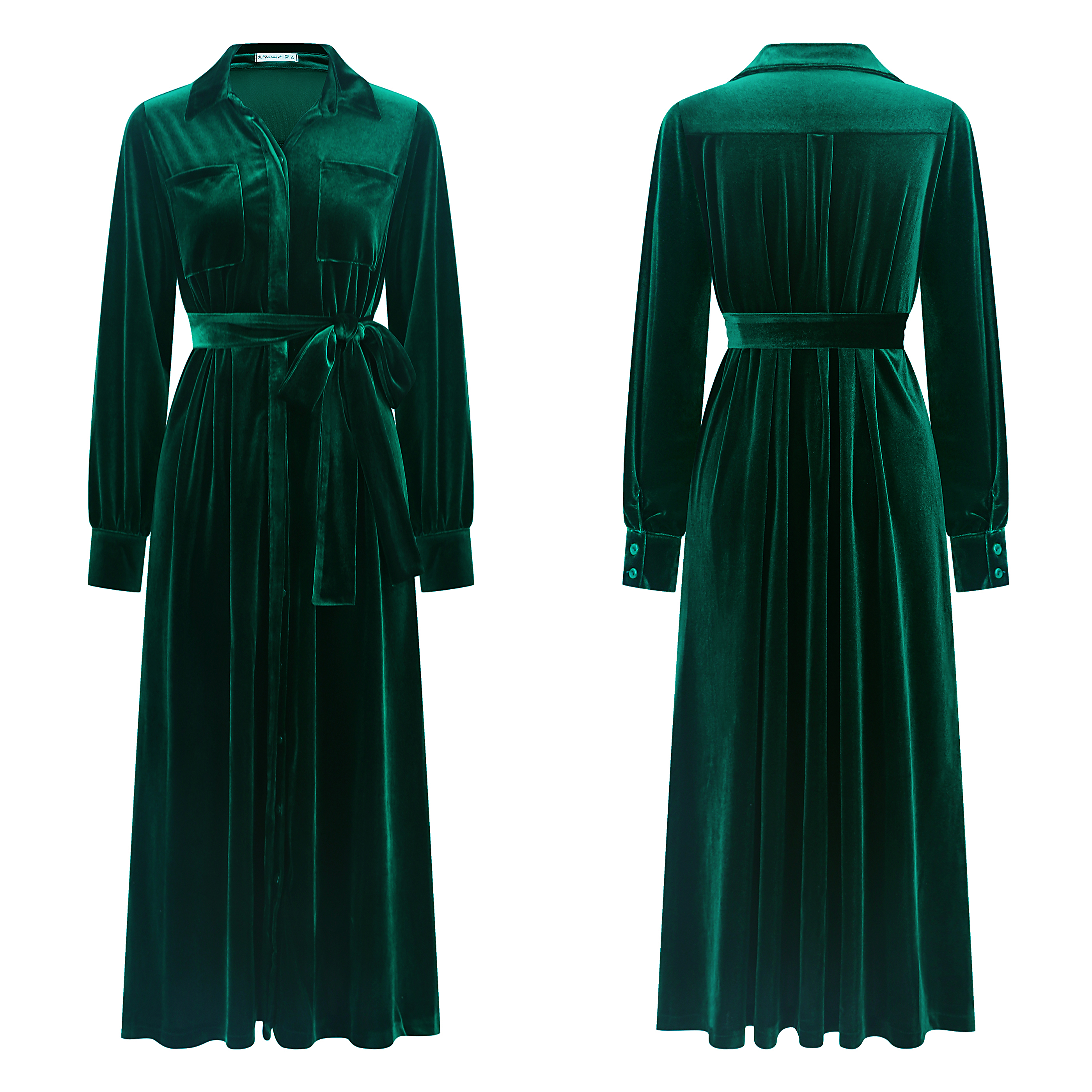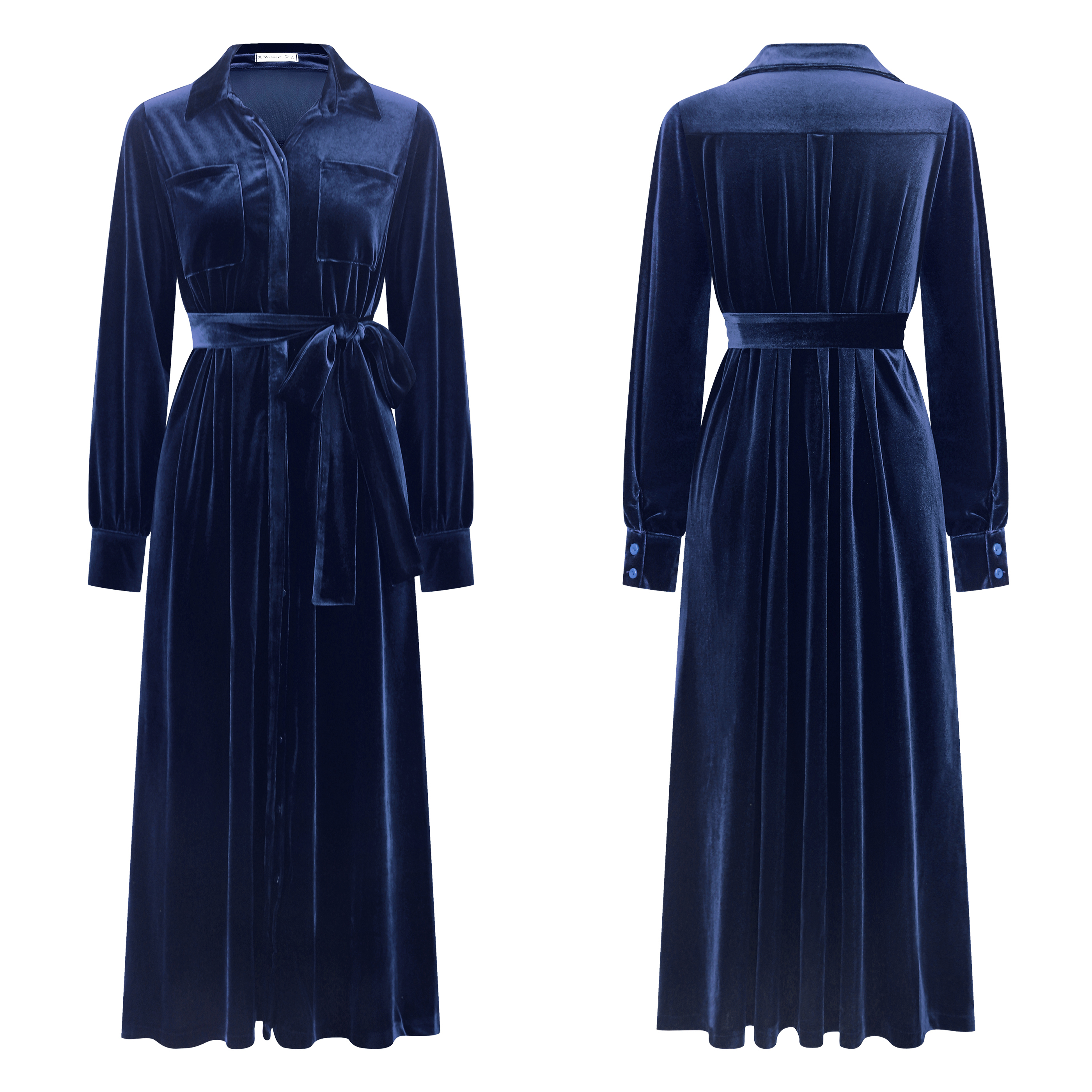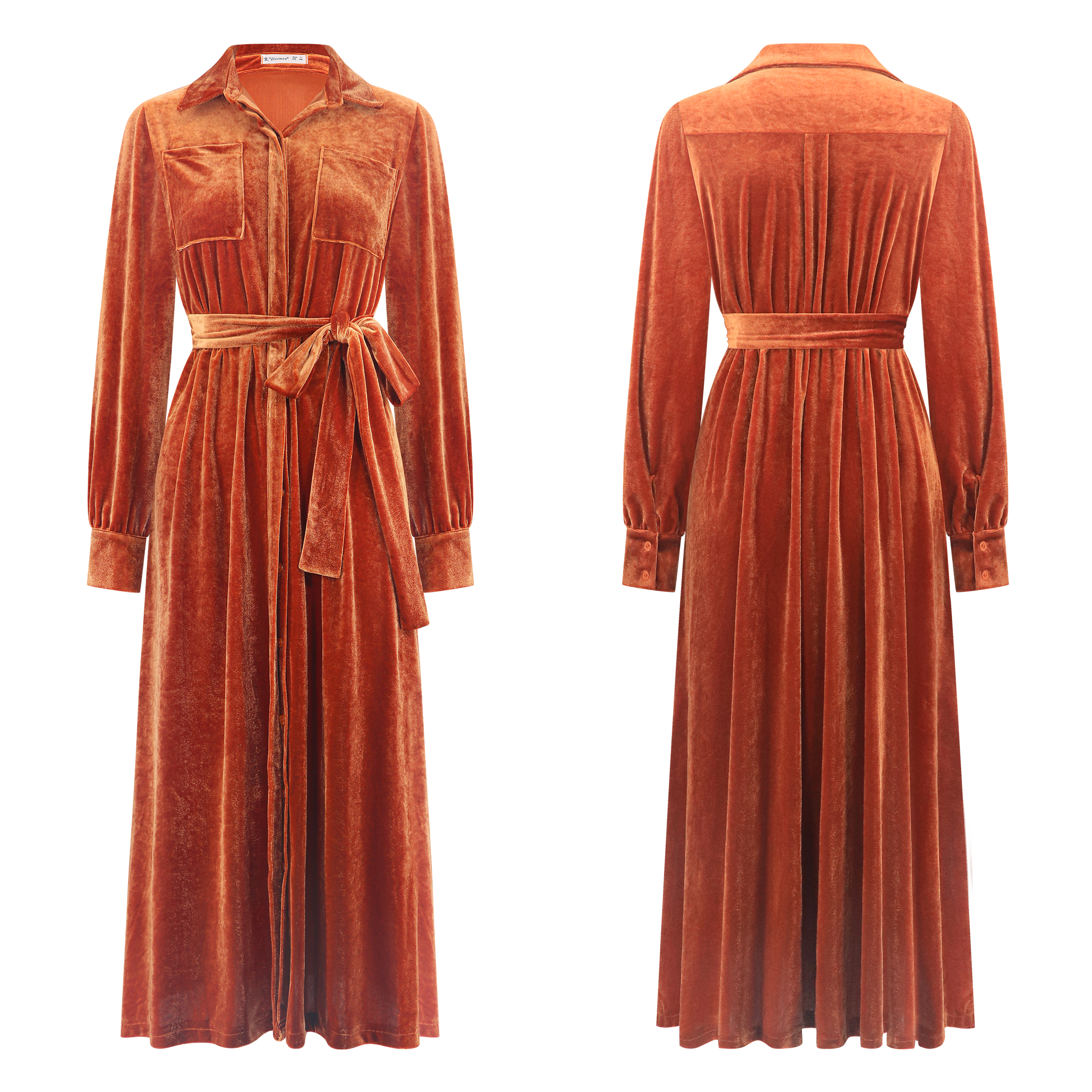 R.Vivimos Women's Fall Long Sleeve Velvet Casual Dresses Button Down Loose Slit Shirt Midi Dress with Belt 21