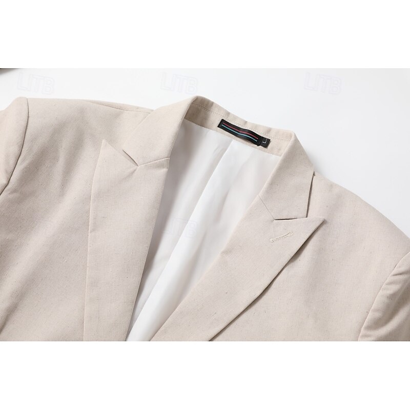 More information about Men's Linen Blazer Business Fashion Casual Spring & Fall Polyester Linen Plain Pocket Buttons Comfortable Single Breasted Blazer White Light Green khaki