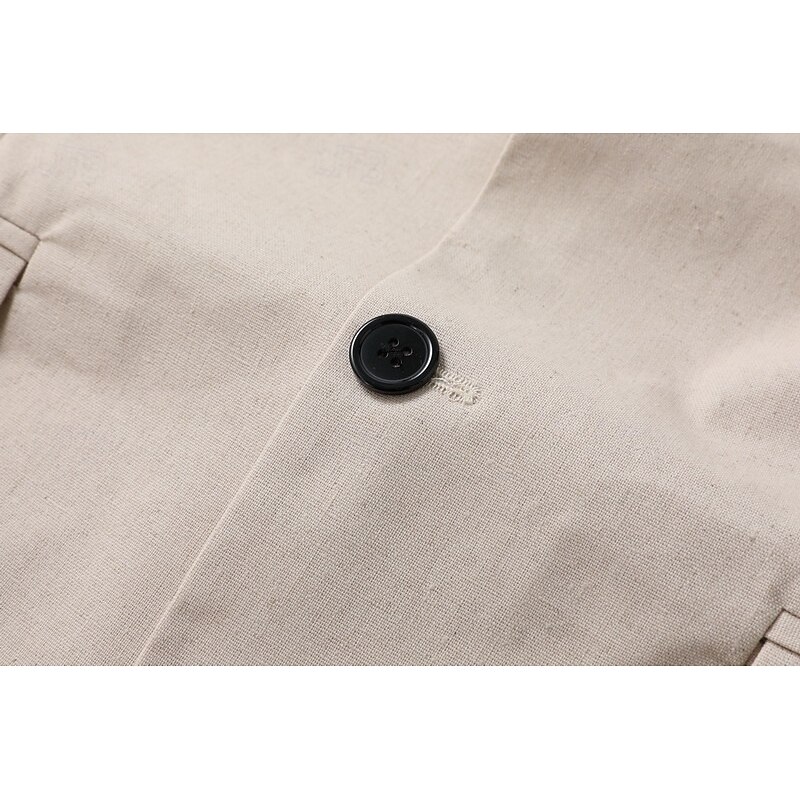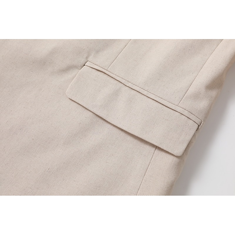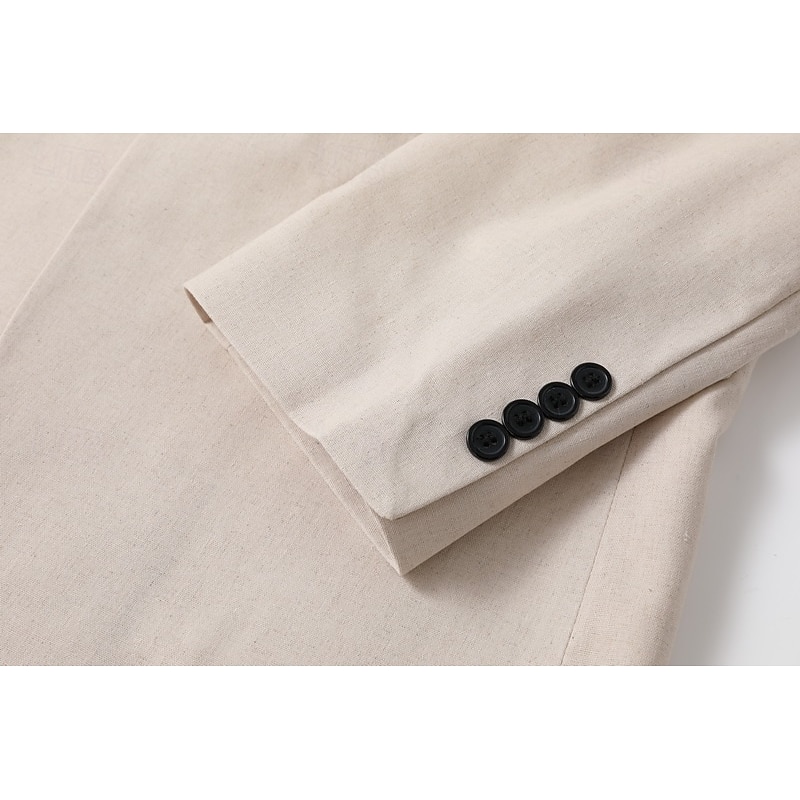 Men's Linen Blazer Business Fashion Casual Spring &  Fall Polyester Linen Plain Pocket Buttons Comfortable Single Breasted Blazer White Light Green khaki 5