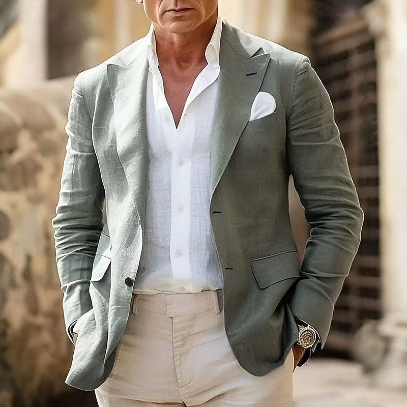 HOT ! Men's Linen Blazer Business Fashion Casual Spring & Fall Polyester Linen Plain Pocket Buttons Comfortable Single Breasted Blazer White Light Green khaki