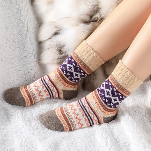 Tavaleu Wool Socks for Women - 5 Pairs Winter comfortable Knit gentle Vintage Casual Crew Socks
