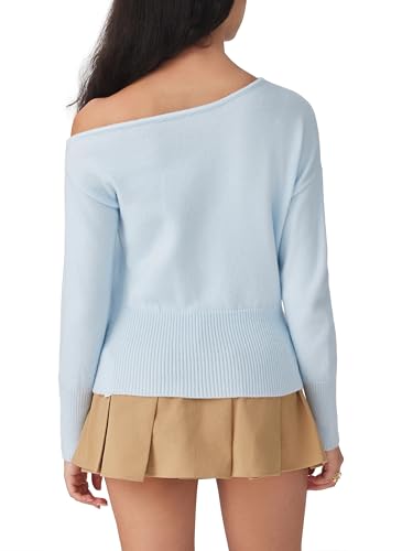 CIDER Off The Shoulder Sweaters for Women Cute Long Sleeve One Shoulder Fall Outfits Knit Pullover Sweater Tops Trendy 6