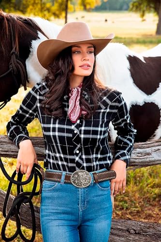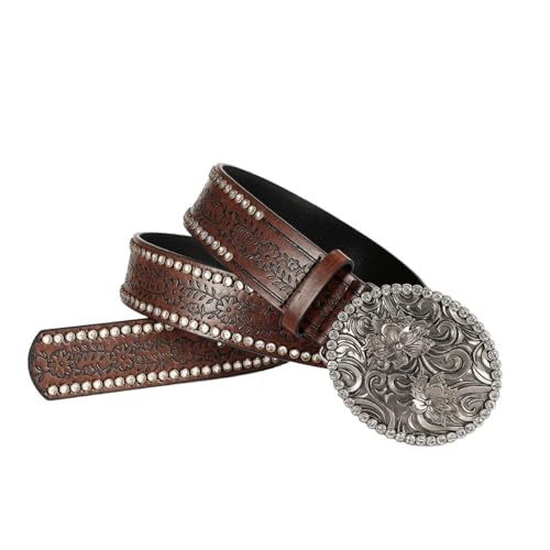 Women Western Cowboy-Cowgirl Rhinestone Belt, Vintage Western Bling Buckle PU Leather Belt Fits Waist 28-38"