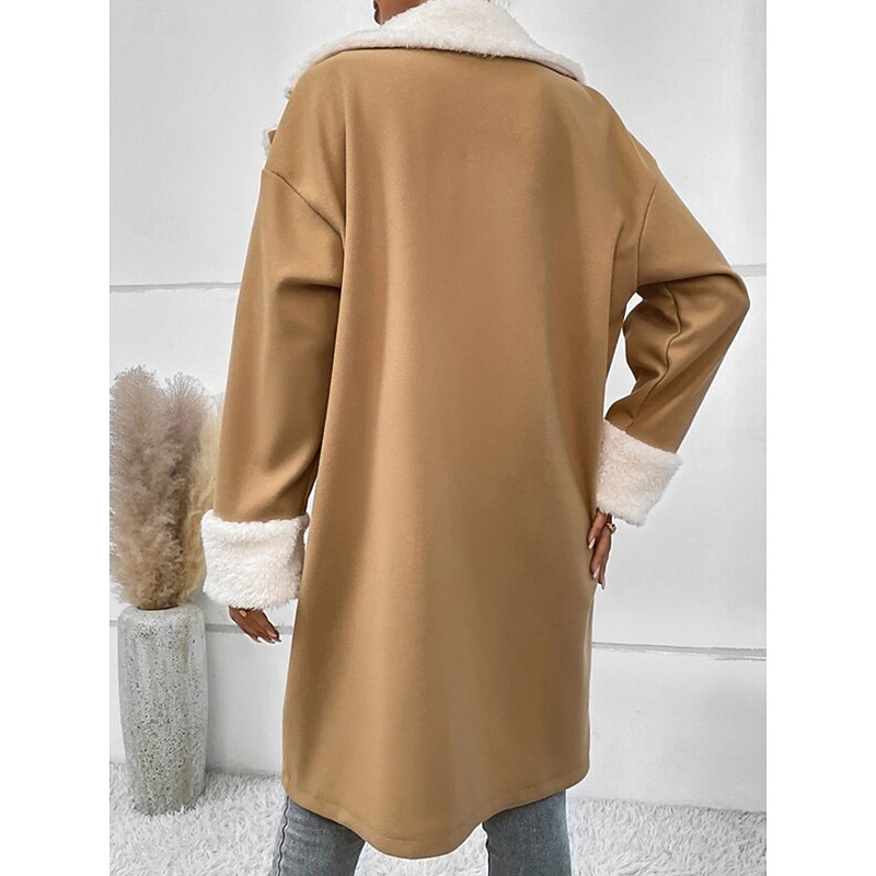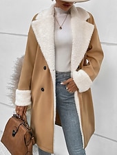 More information about Women's Winter Coat Teddy Coat Windproof Warm Buttons Fur Collar Elegant Outdoor Solid Color Work Casual Double Breasted Turndown Loose Fit Long Sleeve Outerwear Khaki Fall Winter