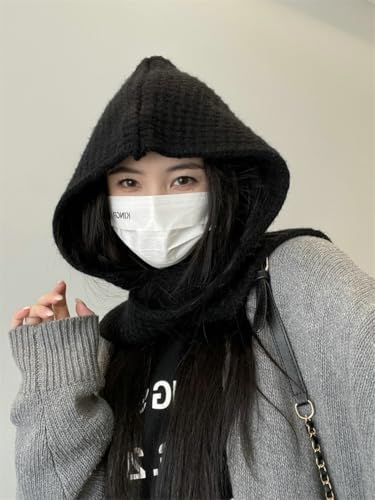 Women Winter 3 in 1 Hooded Hat Scarf Wrap Shawl Winter comfortable Elastic gentle Ear Protection Knitted Beanie Hooded Scarf