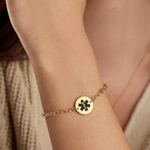 HOT ! Medical ID Bracelet for Women, Stylish Adjustable Customized Med Alert Jewelry, 18k Gold Rose Silver, Personalized Engraving, Hypoallergenic, Waterproof, Includes Gift Box & Medic ID Wallet Card