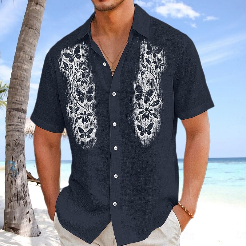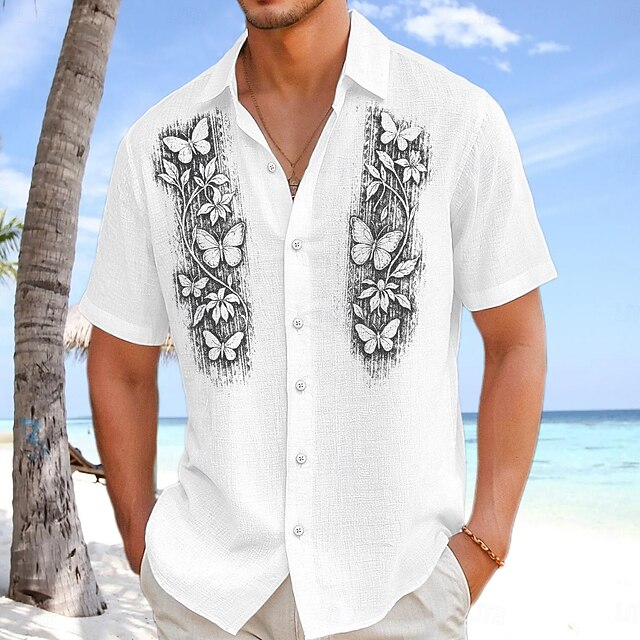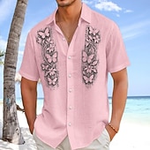 HOT ! Men's Shirt Linen Shirt Summer Shirt Beach Wear Button Up Shirt Solid Color Vacation Curise Black White Pink Navy Blue Short Sleeve Collar Summer Spring & Summer Clothing Apparel Color Block