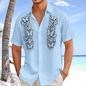 More information about Men's Shirt Linen Shirt Summer Shirt Beach Wear Button Up Shirt Solid Color Vacation Curise Black White Pink Navy Blue Short Sleeve Collar Summer Spring & Summer Clothing Apparel Color Block
