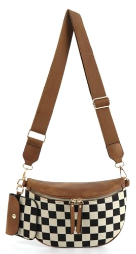 2 Pcs Checkered Crossbody Bags for Women Bum Bag Cute Cross Body Sling Backpack Hobo Satchels Shoulder Wallet Purses 2025 2