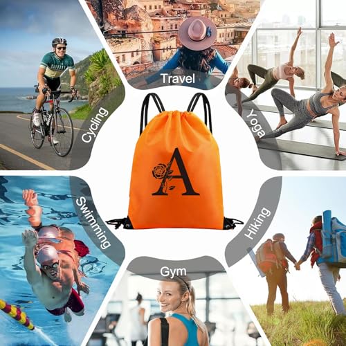 2Pcs Drawstring Backpack, Personalized Initial Design Gym Backpack for Women Men Drawstring Bags Water Resistant String Bag Track Bag for Yoga Traveling Outdoor Sports-Orange (Letter S) 5