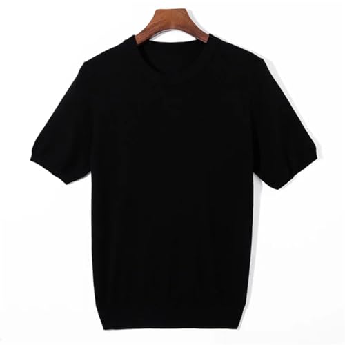 Men’S O-Neck Silk Wool Short Sleeve Pullover Knitted Sweater Thin Casual Loose Fit Solid Color Basic Jumper Tops