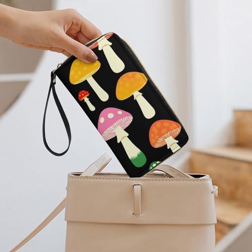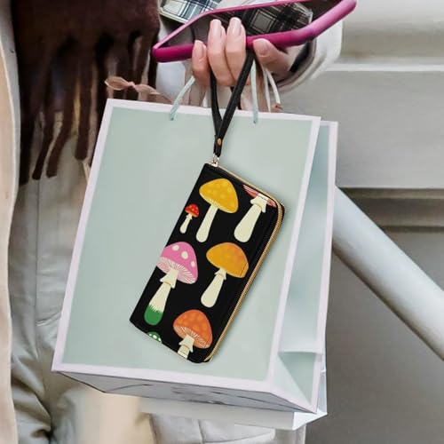 Travel Credit Card Holder Wallet for Women, Pu Leather Slim Card Holder Case Wallet Cute Mushrooms Ladies Funny Mushroom Long Purse with Wrist Strap 6