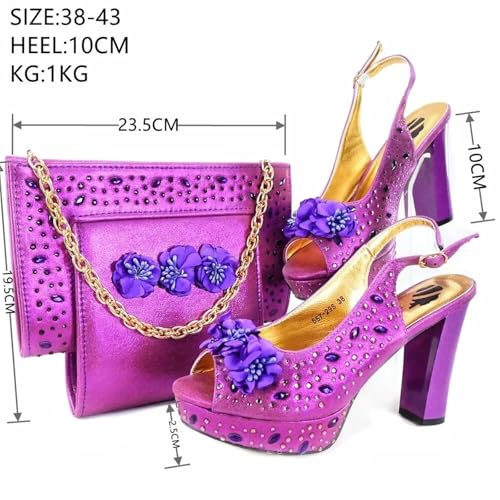 Wine Women Shoes and Bag Set African Ladies High Heels Sandals Match with Handbag Party Pumps Femmes Sandales 6