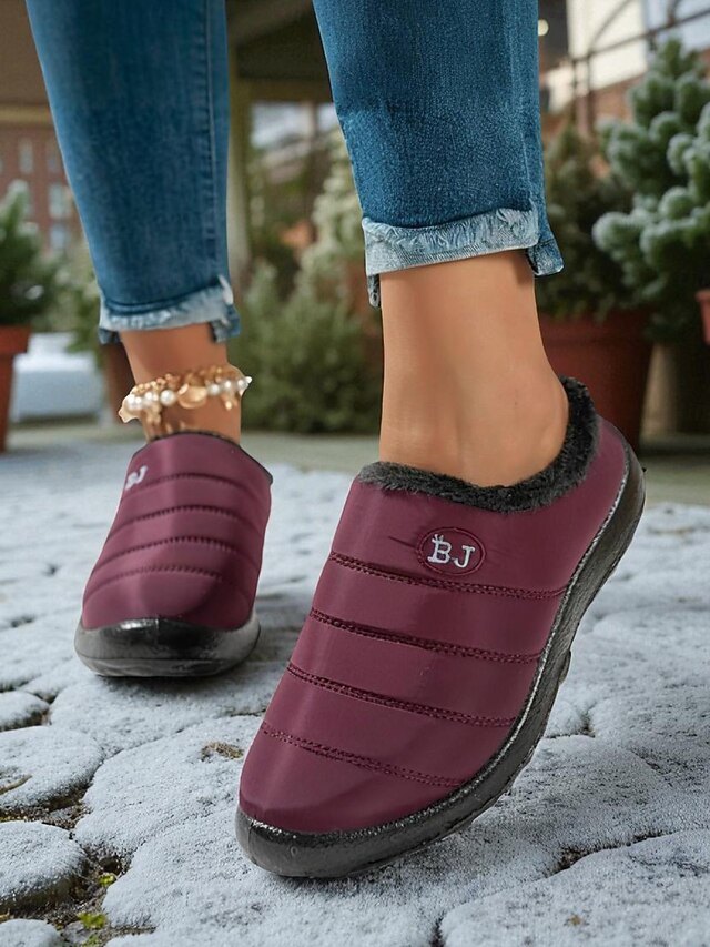 More information about Women's Burgundy Waterproof Winter Slip-On Shoes – Warm Fur-Lined Anti-Slip Mules for Snowy Days, Outdoor Errands and Casual Daily Wear