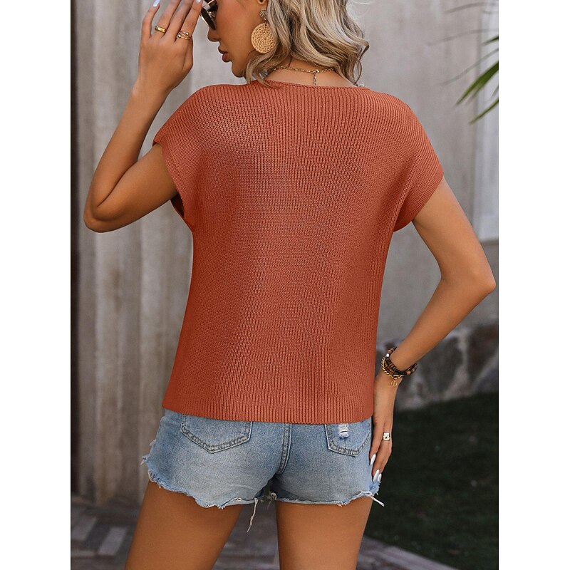 Women's Sweater Vest Elegant Casual Solid Color Ribbed Turtleneck Pocket Short Sleeves Regular Tops Knit Work Black Army Green Summer 10