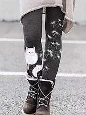 More information about Women's Leggings Vacation Vintage Fashion Full Length High Waist Graphic Animal Cat Printing Thermal Warm Soft Breathable Stretchy Formal Outdoor Vacation Black ash-colored Spring Fall Slim Fit