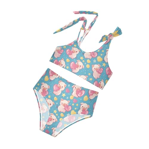 Wusikd Cute Pink Piglets Girls Swimsuits Two Piece Heart-Shaped Swimwear Bikini Set for for Girls Size 3T 5