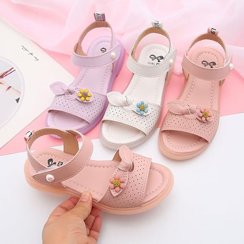 Girls Dress Sandals Kids Cute Floral Open Toe School Summer Casual Pearl Ankle Strap Princess Flat Sandal Shoes 3