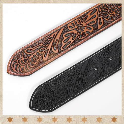 • [ SECOND LAYER LEATHER WESTERN BELT] Mens western belt are made of second layer cowhide leather (softer portion of the hide, not the top grain) and feature beautiful embossing crafted western pattern on the strap. With 3.5mm thickness, this retro cowgirl belt ensures the long-term durability.