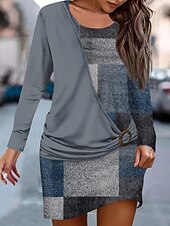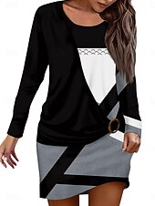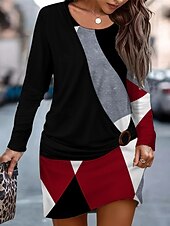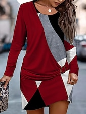 More information about Women's Mini Dress Sheath Dress Wrap Dress Bandage Dress Casual Date Regular Fit Color Block Long Sleeve Crew Neck Black Red Burgundy Blue Fall Winter
