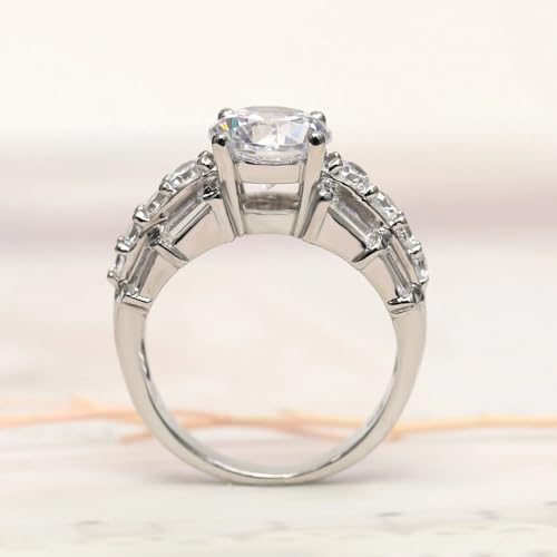 More information about Moissanite Engagement Ring for Women 3 Ct Round Cut with Baguette Round Accents 925 Sterling Silver Wedding Ring