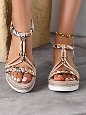 More information about Women's Braided Platform Sandals with Rhinestone Details and Wedge Sole, Comfortable Summer Shoes for Beach and Casual Outings