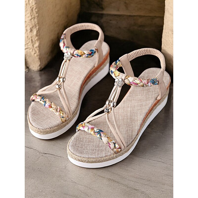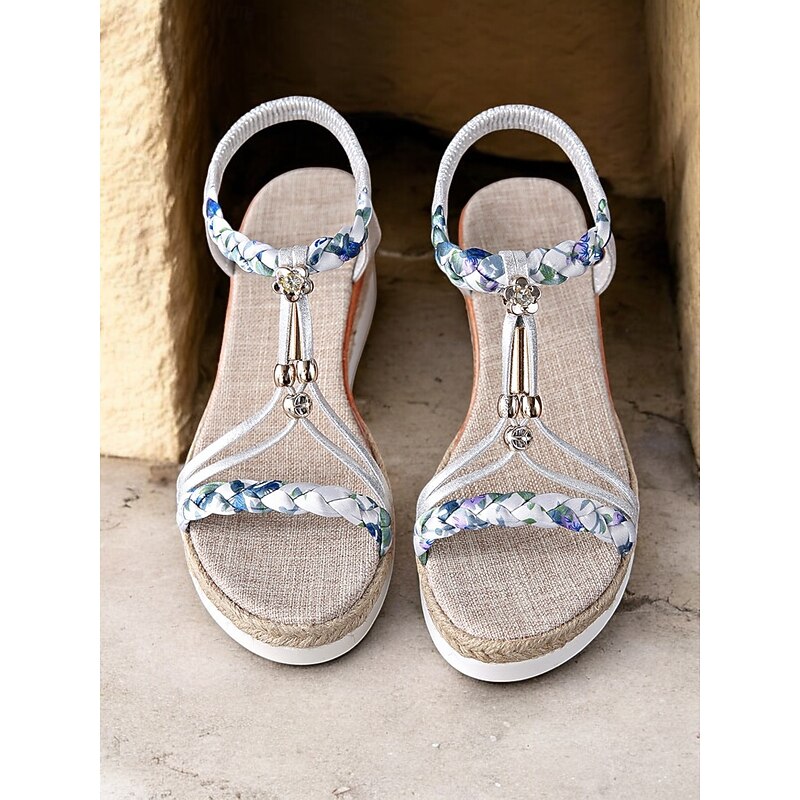 HOT ! Women's Braided Platform Sandals with Rhinestone Details and Wedge Sole, Comfortable Summer Shoes for Beach and Casual Outings