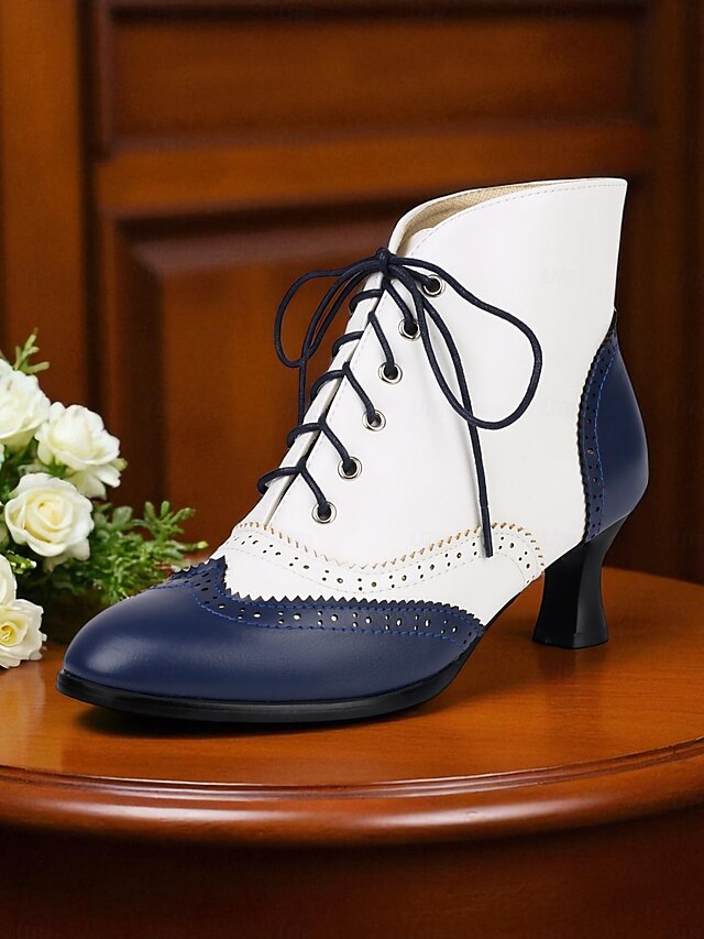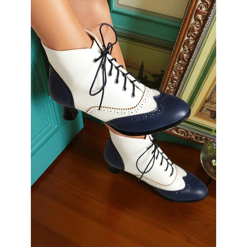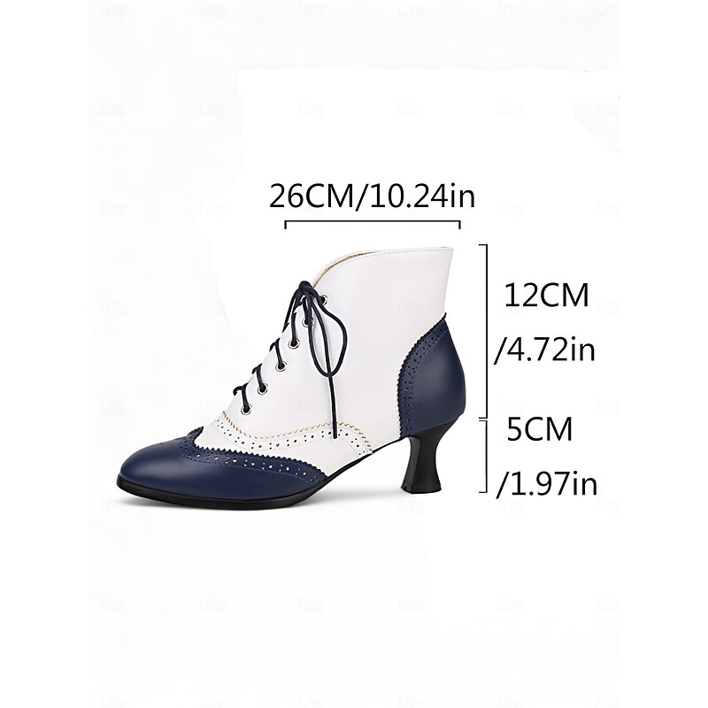 HOT ! Women's 1950s Vintage Oxford Ankle Boots – Two-Tone Lace-Up Brogue Heels with Wingtip Design, Edwardian Style for Retro Outfits, Cosplay, Tea Parties and Daily Wear