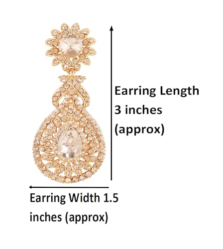 • Touchstone Indian Bollywood Beautifully Hand Finished Victorian Studded Look White Rhinestone Designer Jewelry Chandelier Earrings In Gold Tone For Women. EXTRA LONG EARRINGS. Length 3 inches SPECIFICATIONS : Beautiful Victorian inspired wedding or evening long designer chandelier earrings. Earring weight (single) 17 gms. Earring length 3 inches. Earring width1.50 inches.