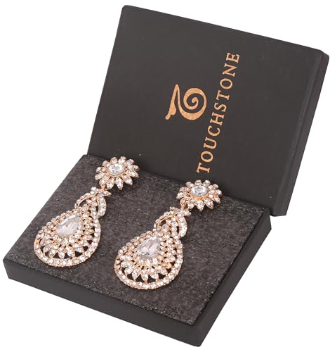 HOT ! Touchstone Indian Bollywood Bling Perfect Handcrafted Fascinating Floral Designer Jewelry Chandelier Earrings In Gold or White Tone For Women.