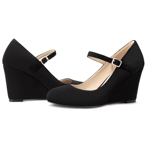 Womens Wedge Pumps with Ankle Strap for Dressy Ladies Mary Jane Shoes Closed Toe Wedges Heels for Women